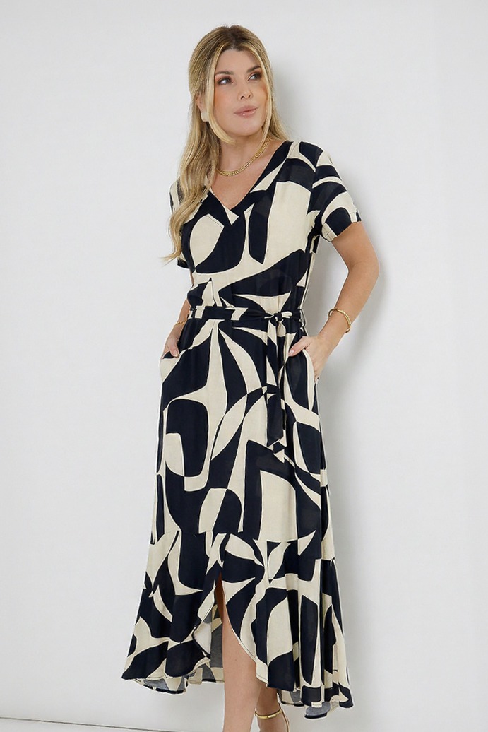 Vestido Sobreposição Manga Longa PRETO BRANCO