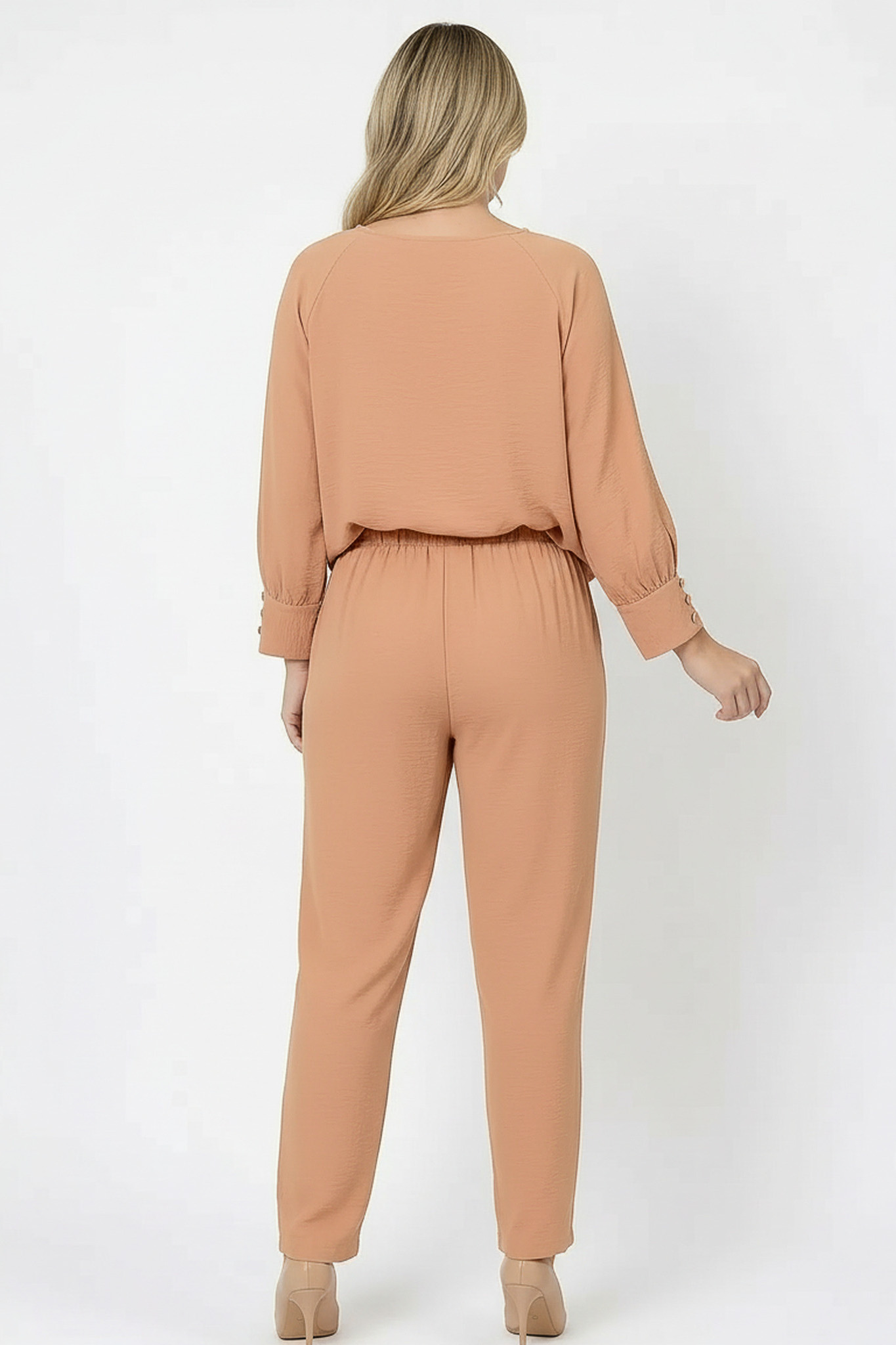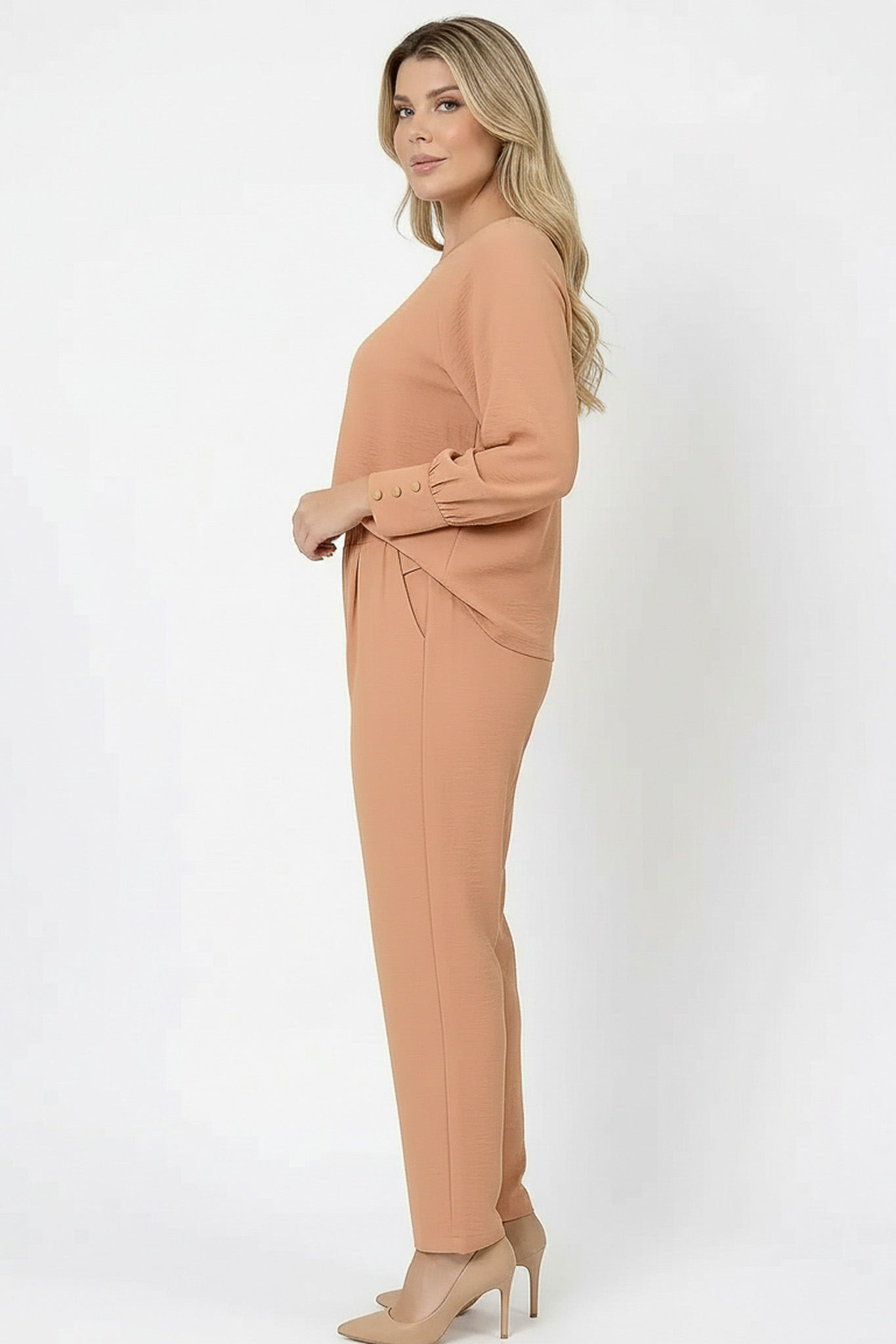 • Conjunto confeccionado em crepe duna 100% poliéster, com toque leve, caimento elegante e conforto ao vestir